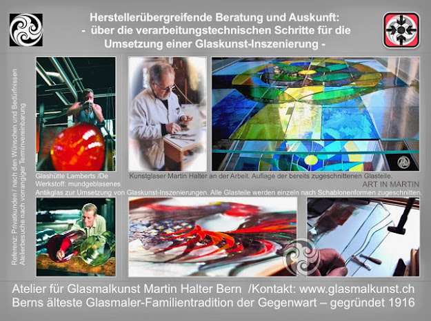 Glasmalerei beinhaltet eine komplexe Vielfalt an Eigenschaften, die es jeweils bei der Umsetzung von Reparaturen zu berücksichtigen gilt. Die Glasmalerei im Zeitgeist der Gegenwart untersteht ebenso besonderen Gesetzmässigkeiten, um sich nach Bedarf und Wunsch überzeugend selbst darstellen zu können. Farben u. Design im Licht repräsentiert sich jeweils am unmittelbarsten... Weitere Info: https://glasmalkunst.ch oder Kontakt: info@glasmalkunst.ch